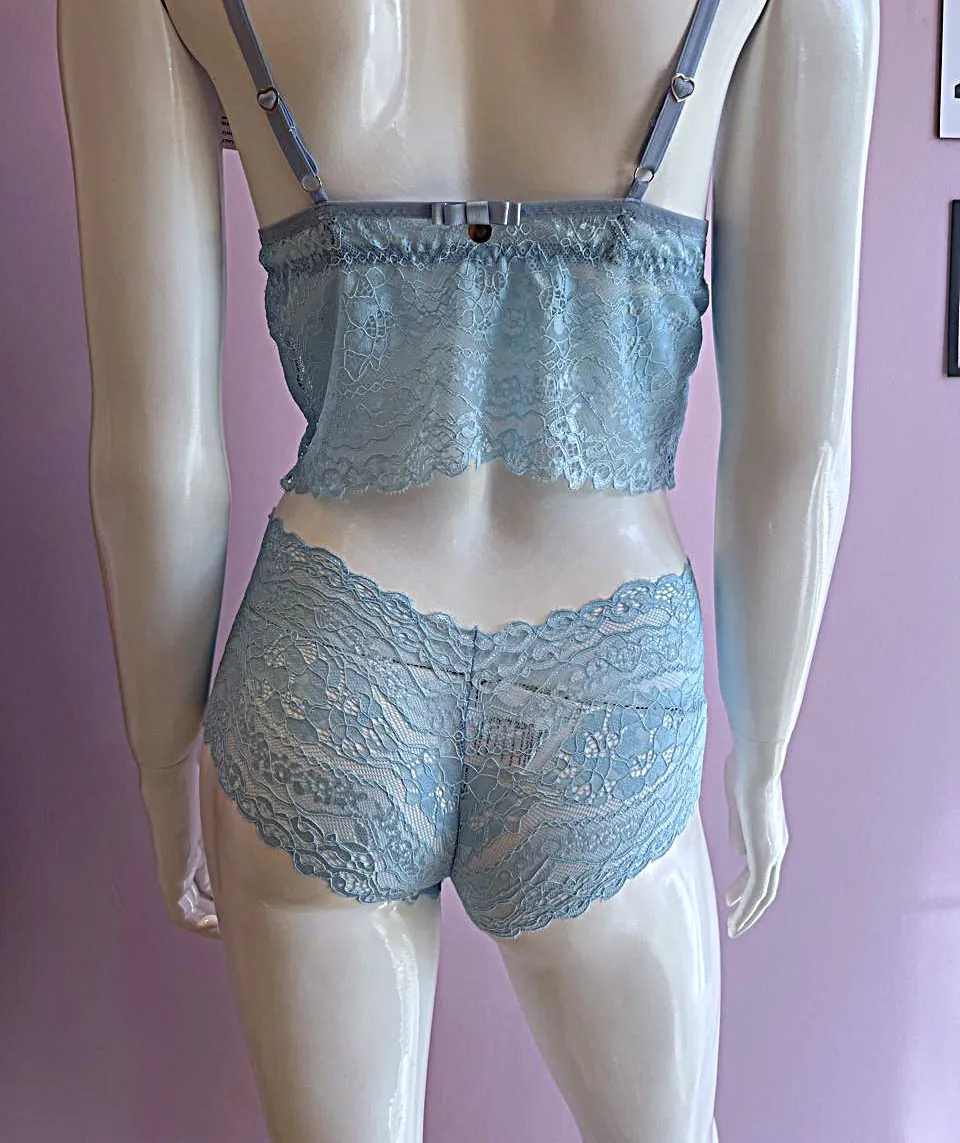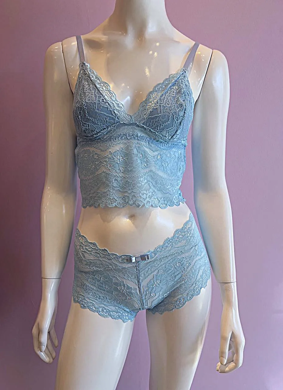 Conjunto Cropped Longo em Renda na cor Frozen