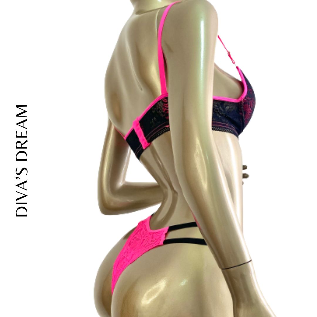 Seja o primeiro a avaliar "Conjunto Diva’s – Rosa Neon com Preto"
